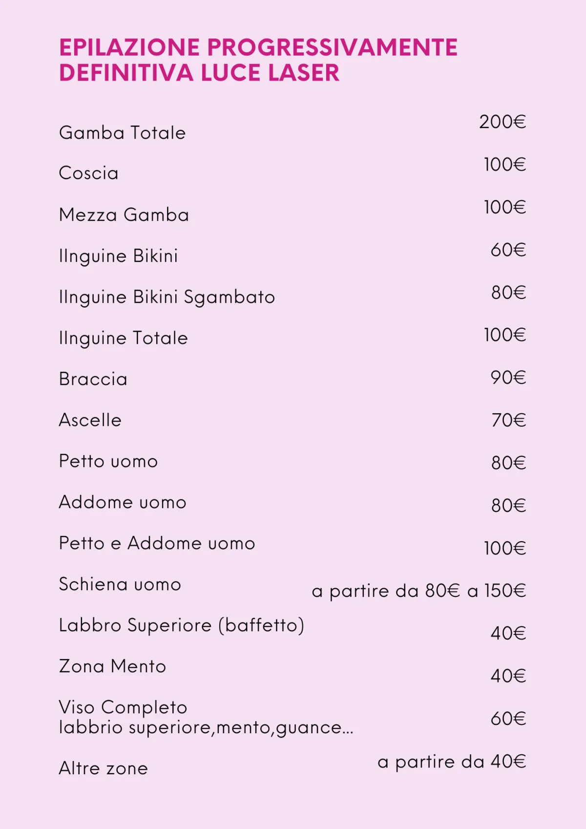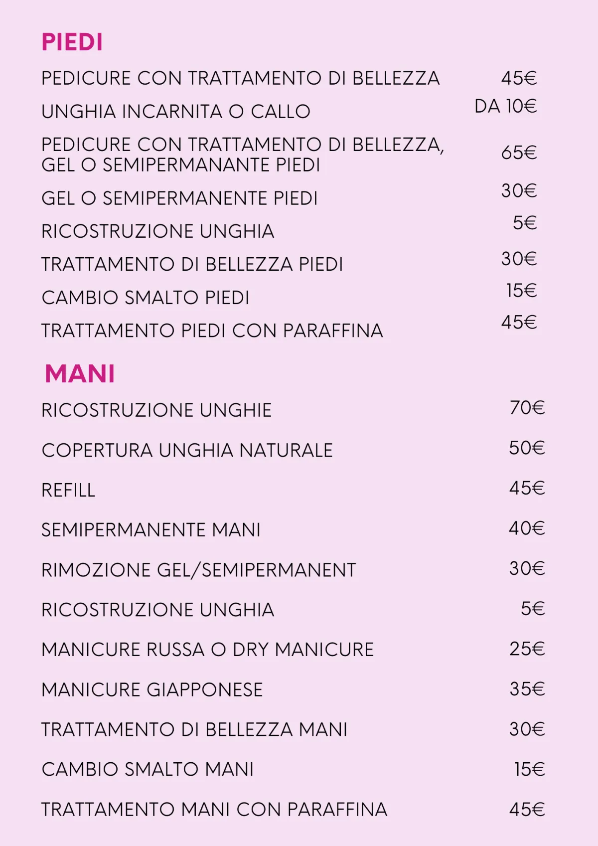 manicure, pedicure, ricostruzione unghie, ceretta, epilazione laser...